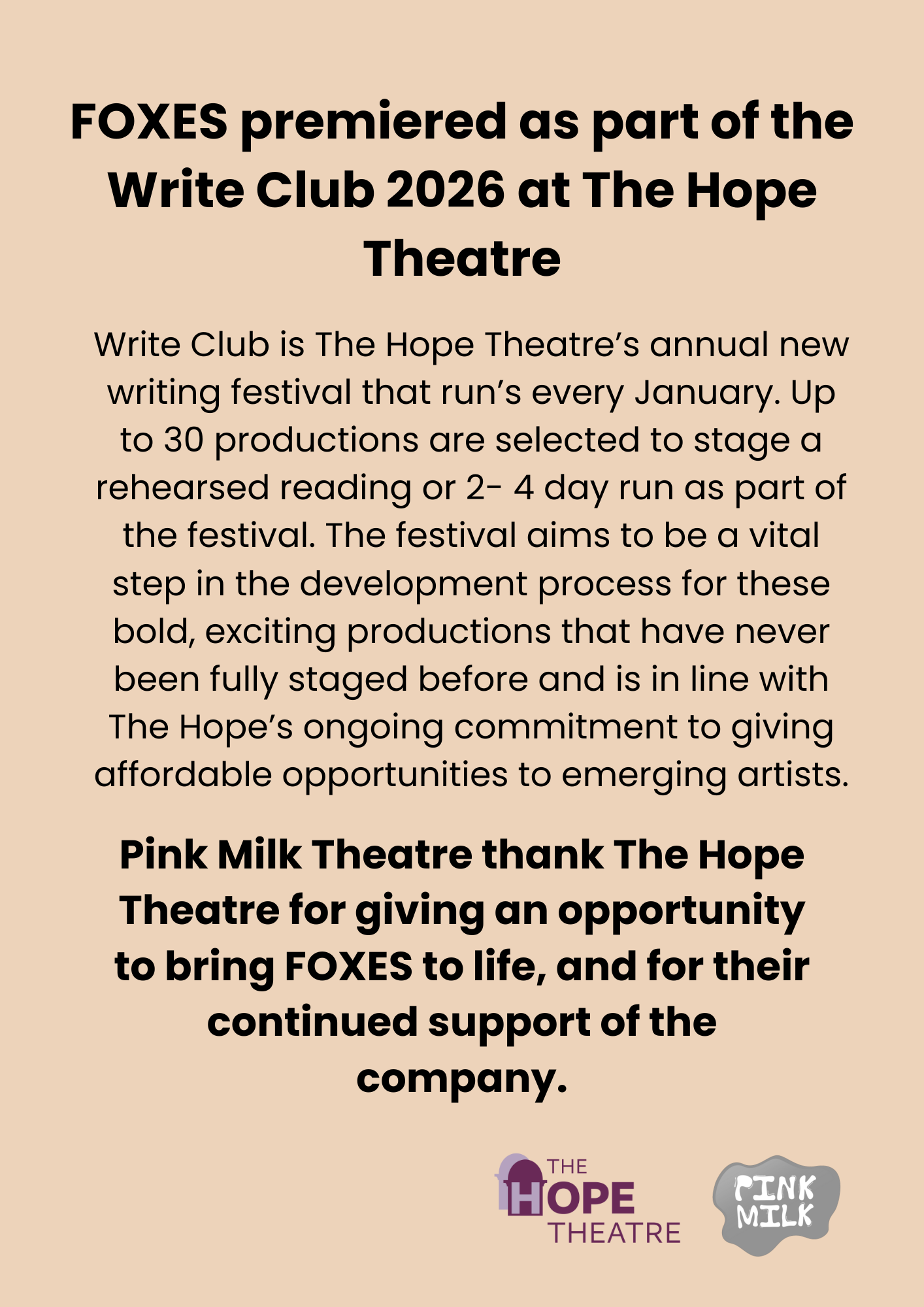 Part of The Hope Theatre’s Write Club 2026