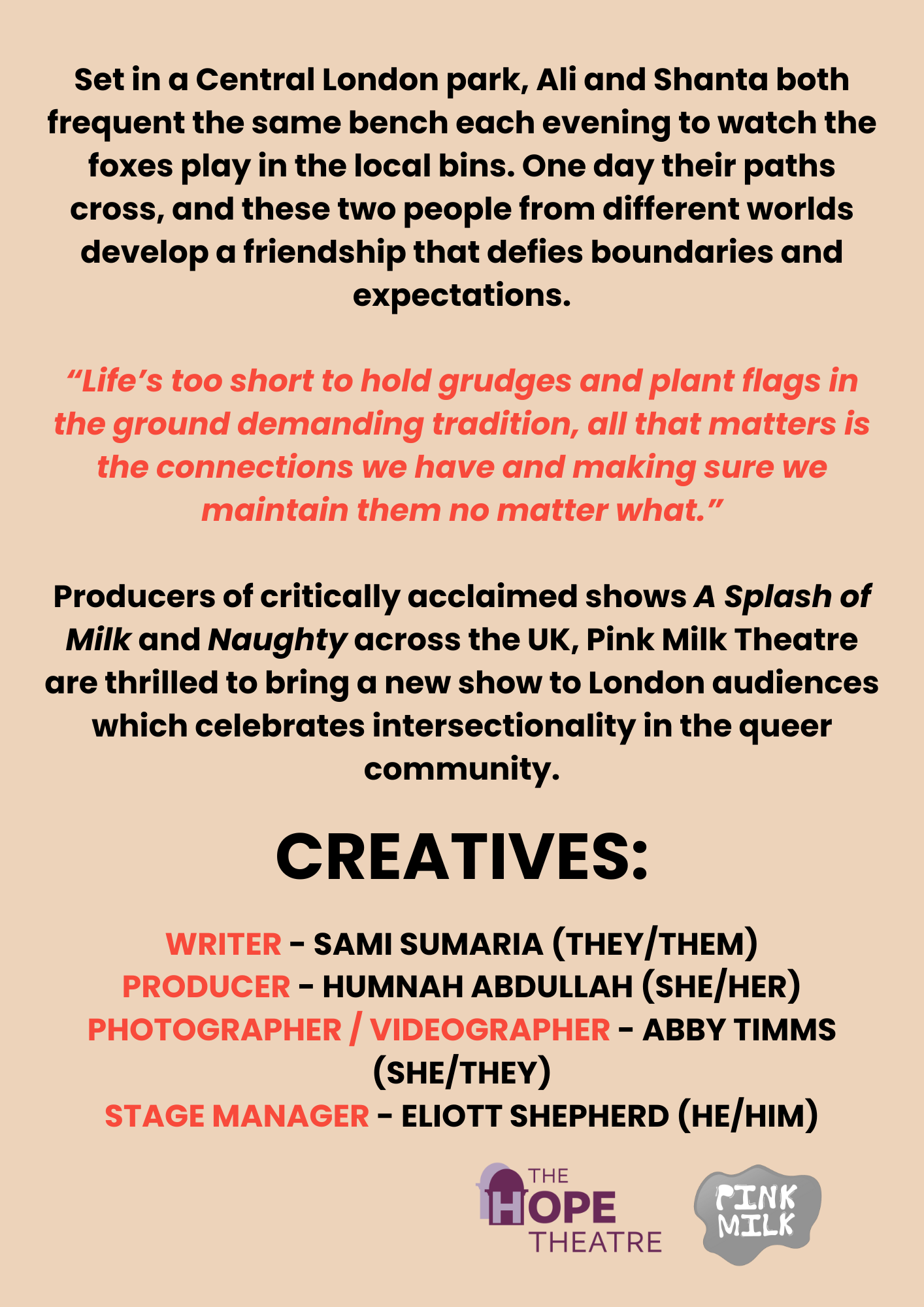 Producers of critically acclaimed shows ‘A Splash of Milk’ and ‘Naughty’ across the UK, Pink Milk Theatre are thrilled to bring a new show to London audiences which celebrates intersectionality in the queer community